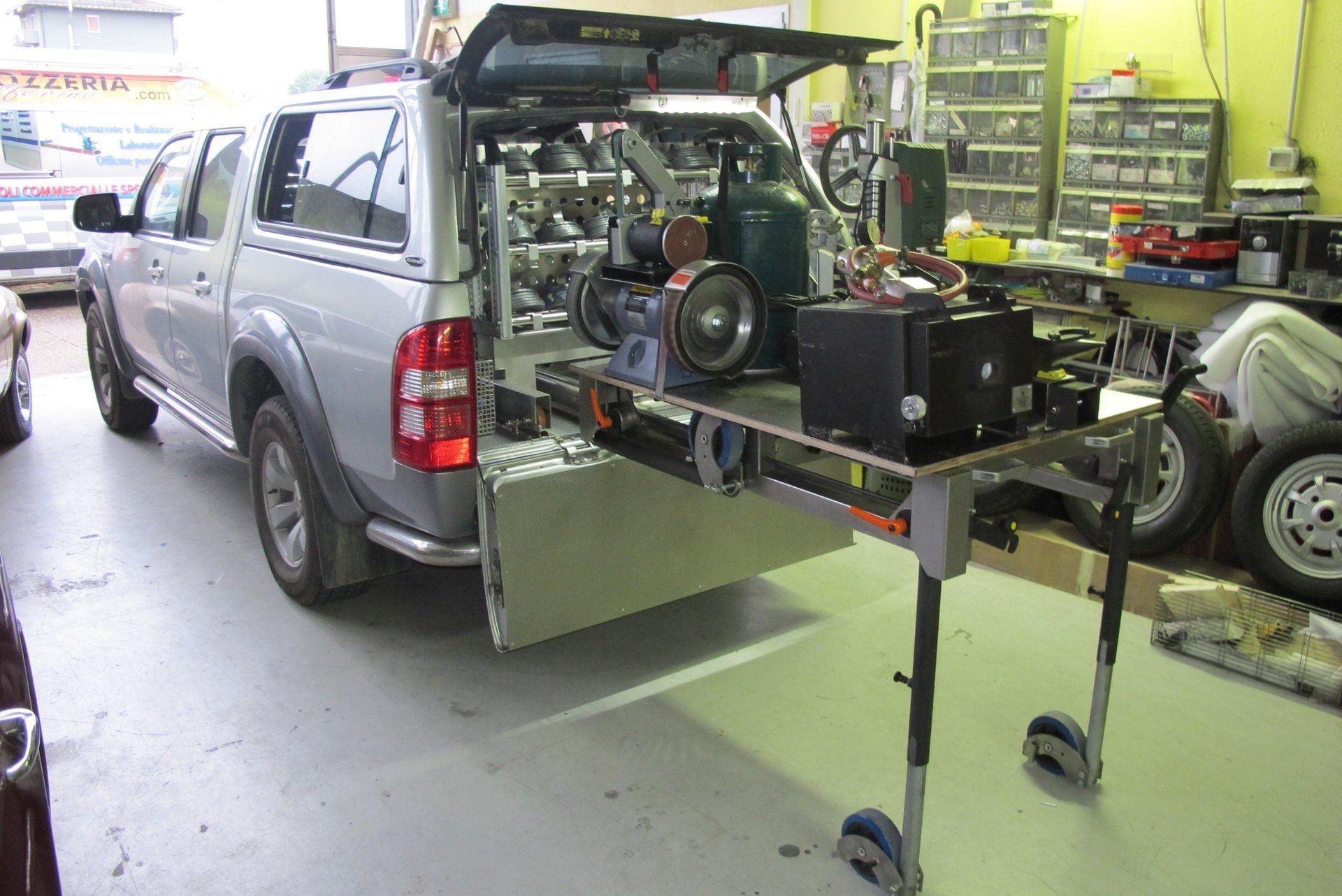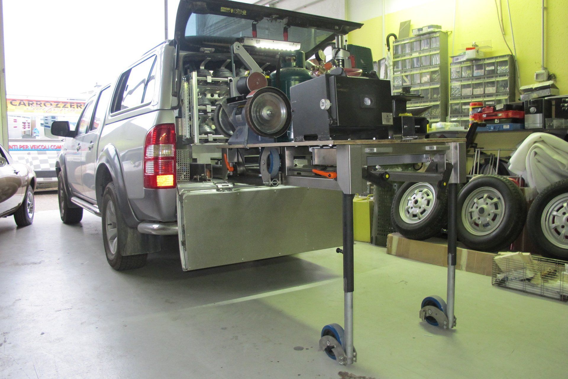 La divisione Officine Mobili della Carrozzeria Solferino è in grado di soddisfare le necessità di numerose categorie professionali, soprattutto di coloro che hanno bisogno di un'officina mobile attrezzata e completa di Banco con morsa, impianto elettrico ed aria compressa e apposite scaffalature per alloggiare le varie attrezzature. Creare un allestimento su misura, come un’officina mobile, vuol dire analizzare i bisogni del cliente e utilizzare nel miglior modo possibile spazi e dimensioni e pesi, utilizzando i più attuali materiali e moderne tecniche di realizzazione in maniera ergonomica e attenta alla sicurezza. Tutti gli elementi per un’officina mobile, come piani di lavoro ribaltabili, fiancate, cassettiere, sono combinabili tra di loro in modo omogeneo e cura estetica.