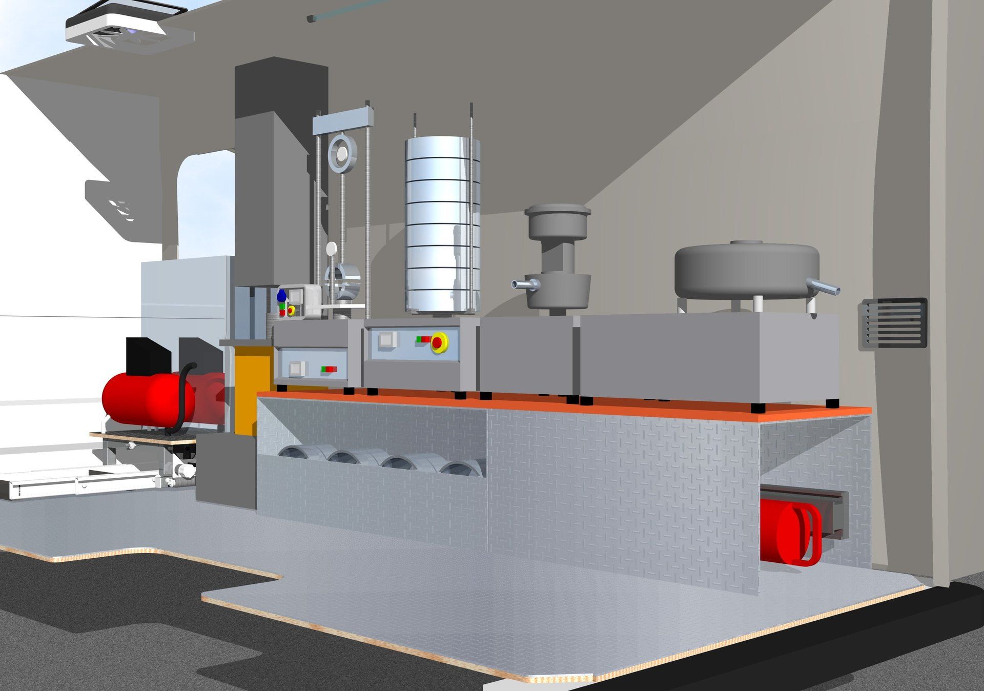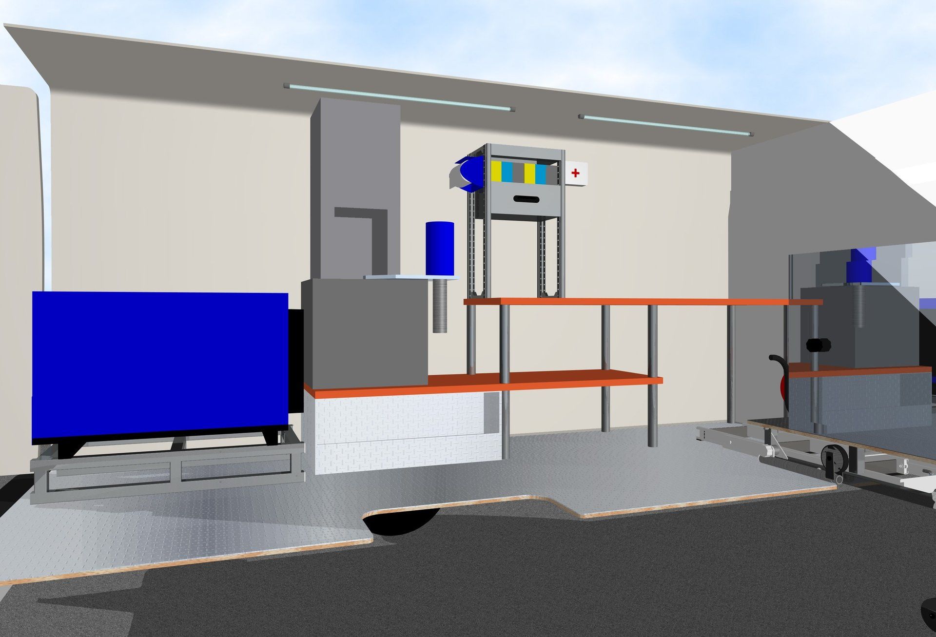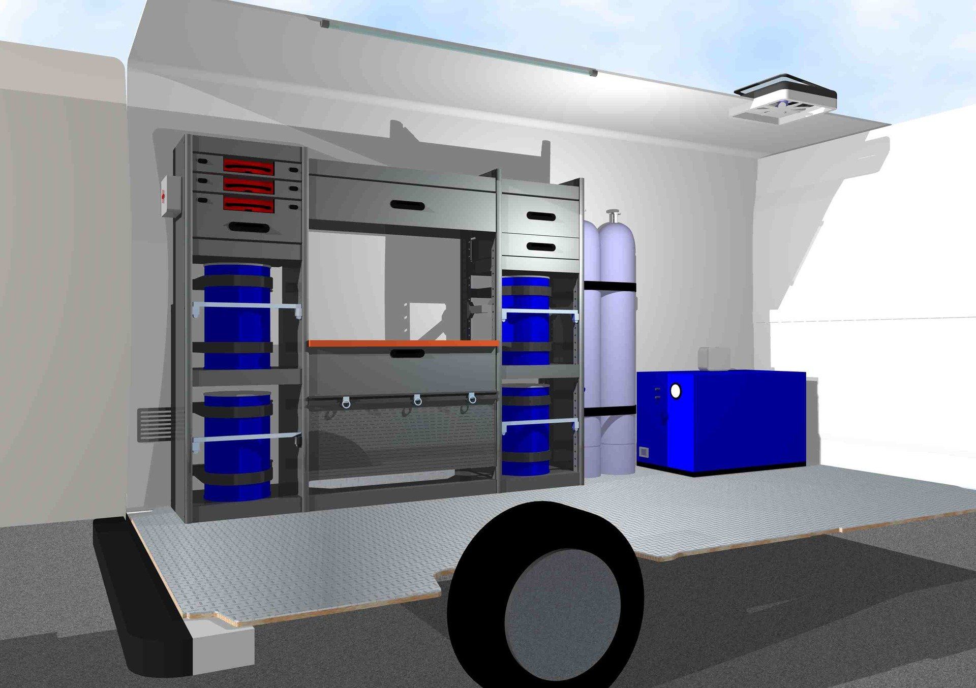 Ad esempio, un allestimento interno di un Laboratorio Mobile si compone di diversi accessori: Banchi modulari e i piani di lavoro, Sistema di climatizzazione, Vano portabombole, vasca per liquidi e sistemi di filtrazione, Accessori vari per attività di laboratorio (vetreria e supporti, pinze, piastre riscaldanti, termometri, agitatori, bilance, carte filtranti, supporti antirovesciamento, contenitori di recupero, guanti ed occhiali di sicurezza).