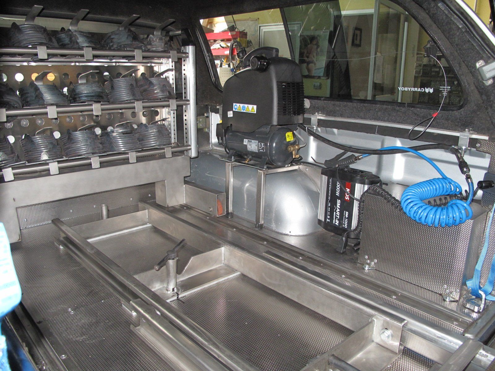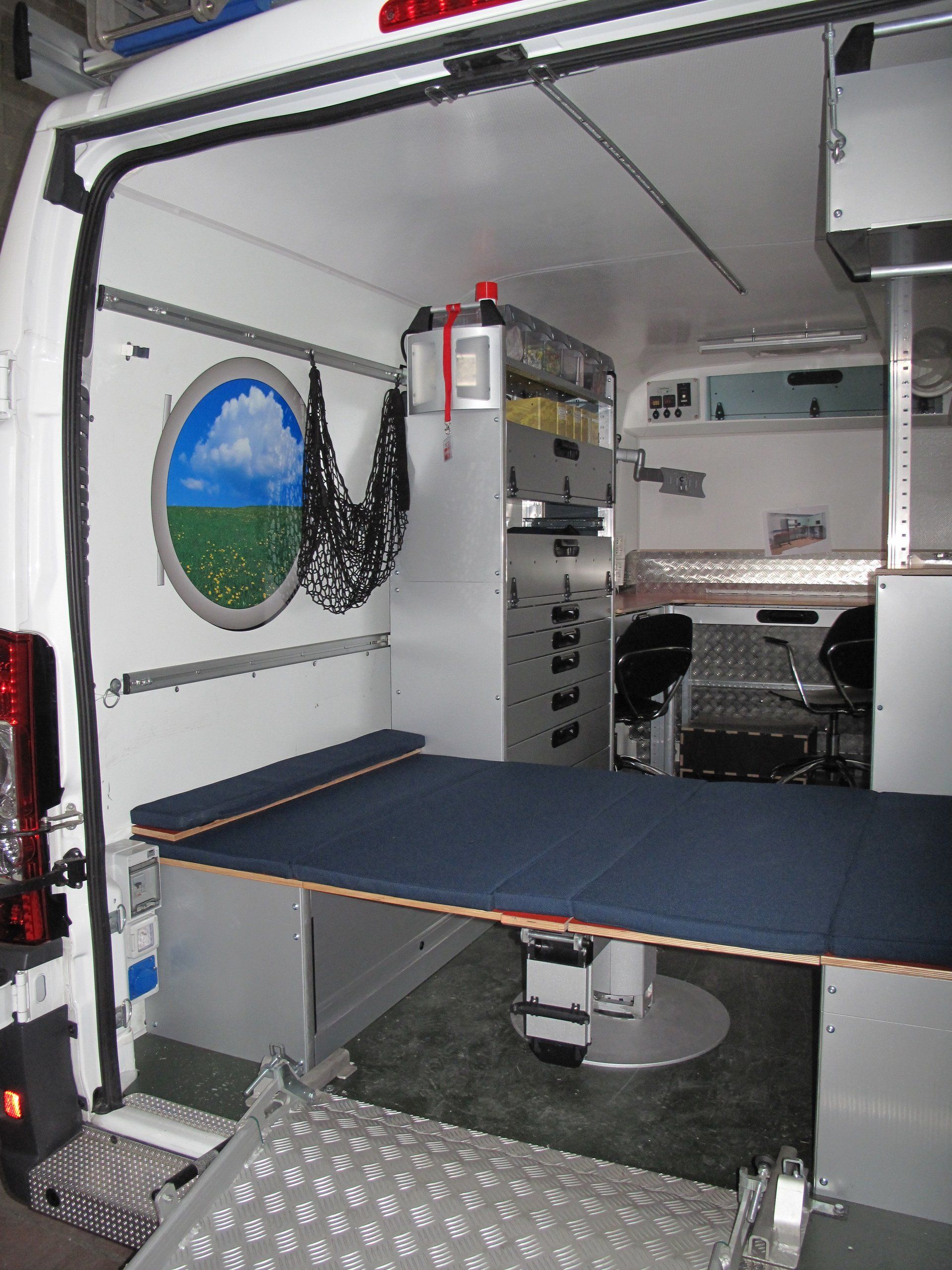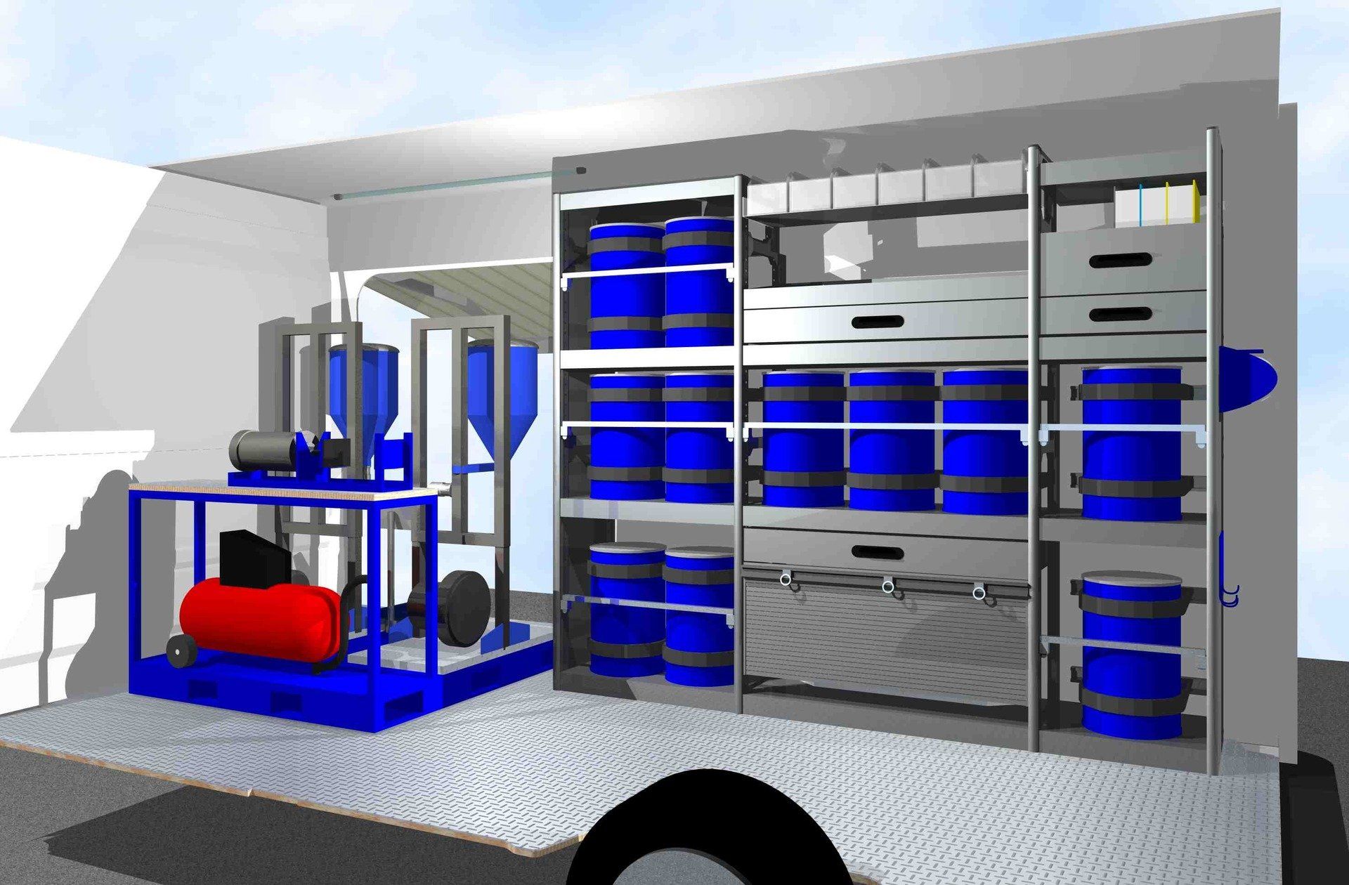 Ad esempio, un allestimento interno di un Laboratorio Mobile si compone di diversi accessori: Banchi modulari e i piani di lavoro, Sistema di climatizzazione, Vano portabombole, vasca per liquidi e sistemi di filtrazione, Accessori vari per attività di laboratorio (vetreria e supporti, pinze, piastre riscaldanti, termometri, agitatori, bilance, carte filtranti, supporti antirovesciamento, contenitori di recupero, guanti ed occhiali di sicurezza).